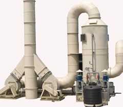 玻璃鋼洗滌塔是硫酸生產(chǎn)線的主要設(shè)備,該塔的主要作用是:由塔底進(jìn)塔的帶有礦塵、砷、硒、氟、二氧化硫等雜質(zhì)和二氧化碳?xì)怏w,經(jīng)填料層,由塔頂排出。而稀硫酸通過塔頂?shù)膰娮靽娏埽怪盍蠈又袣庖撼浞纸佑|,除去雜質(zhì),達(dá)到凈化氣體的作用。
